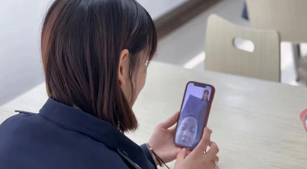 接到参加疫情防控任务的命令后,张思遥吃住在单位,休息时才有时间跟孩子视频。 邢台市公安局供图