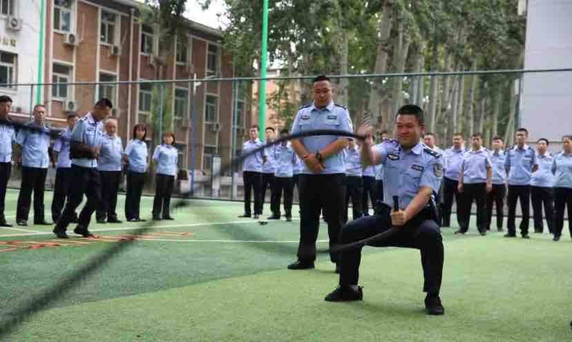 资料图片:图为黄照舜(左一)培训法警队员时的情景。