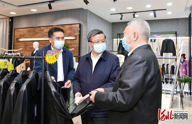 5月10日,省委书记倪岳峰在辛集市调研。这是倪岳峰在辛集国际皮革城询问皮具、皮革服装等产品产销情况。 河北日报记者赵海江摄