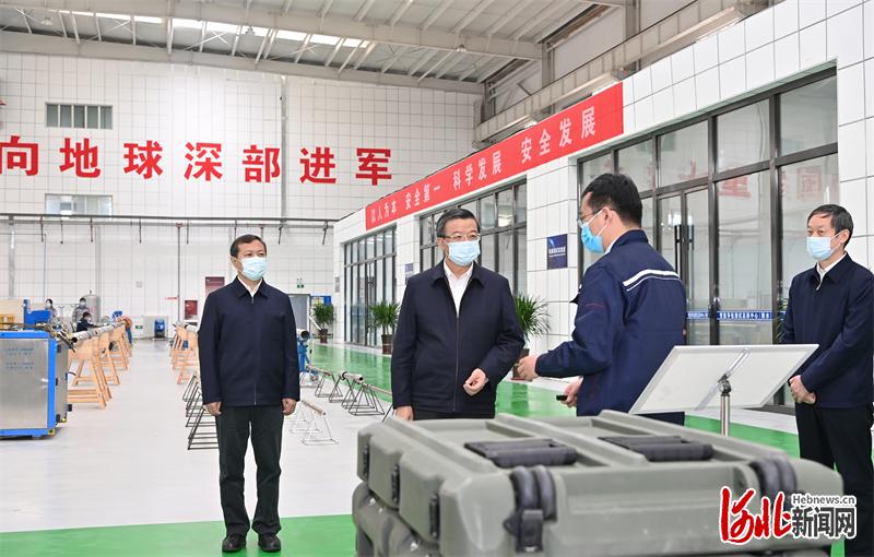 5月11日,省委书记倪岳峰在衡水市调研。这是倪岳峰在中科恒道衡水科技有限公司详细了解企业生产运营情况。 河北日报记者赵海江摄