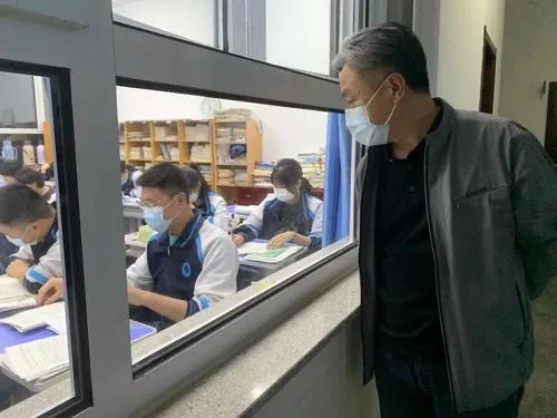 秦皇岛市实验中学校长刘平在巡视晚自习。