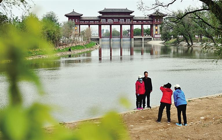 市民在王希鲁闸所喜看清水流过,并合影留念