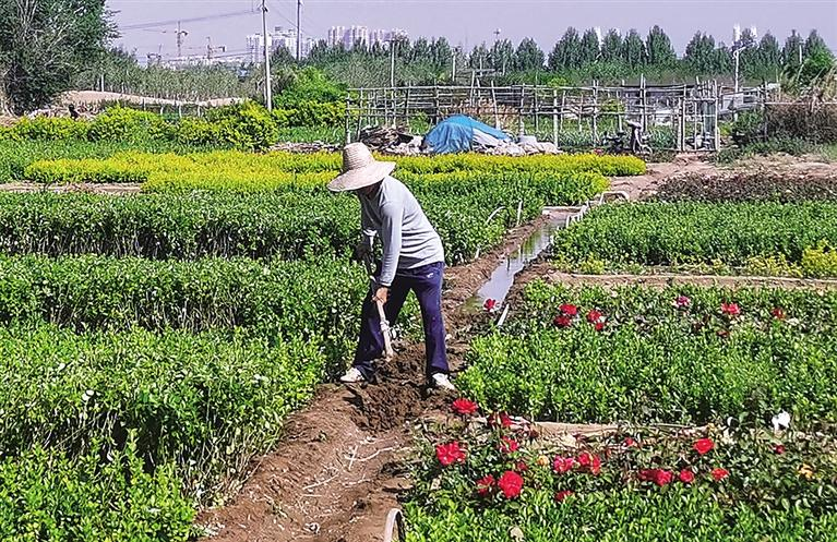 沧县肖庄子花圃园农民用运河水浇园