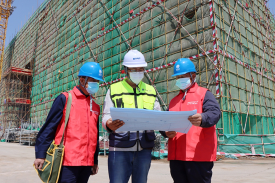国网石家庄鹿泉供电公司党员服务队到河北普兴电子科技股份有限公司新外延产业基地项目现场开展上门服务,了解项目用电需求。 张静摄