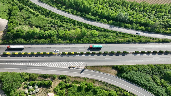运输进京物资的货车正在高速公路上行驶。 河北省交通运输厅供图