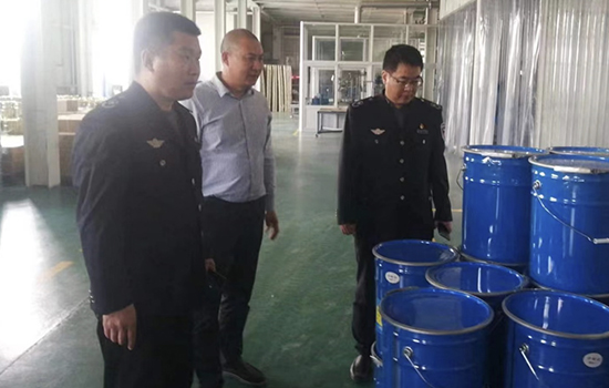 相关工作人员在企业进行检查。石家庄市生态环境局供图