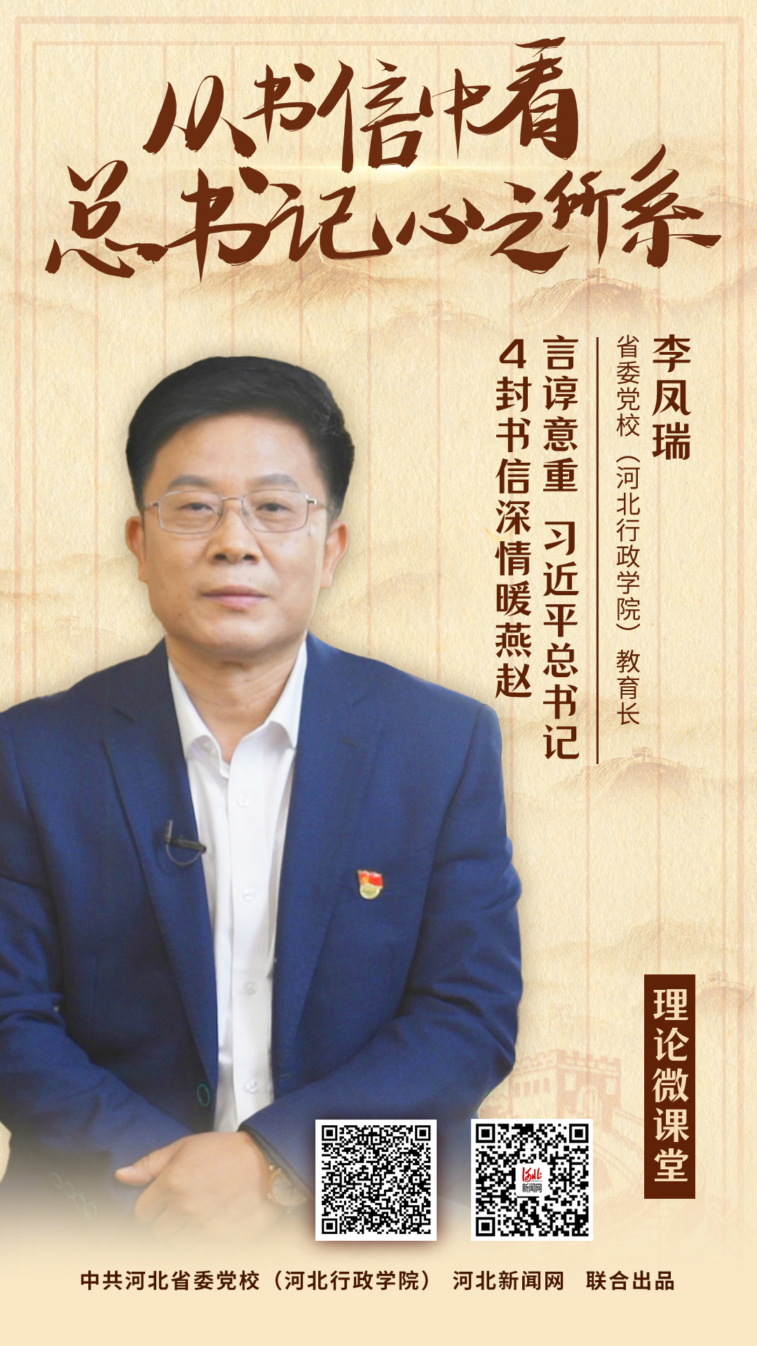 由河北新闻网和省委党校(河北行政学院)联合打造的《理论微课堂》栏目即日起将陆续推出《从书信中看总书记心之所系》系列微视频,力求从习近平总书记给河北人民的4封书信贺信中,读懂总书记心之所系,感悟习近平新时代中国特色社会主义思想的真理光辉。今日推出第一期《言谆意重 习近平总书记4封书信深情暖燕赵》。
