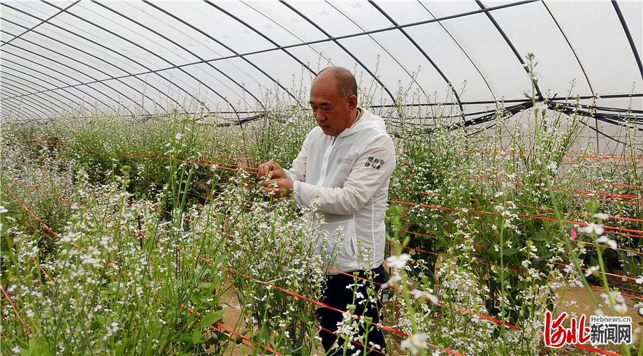 近日,位于邢台市任泽区的捷如美科研园区的育种大棚内,各种蔬菜花开正艳。一片花海中,育种专家张全杰正在小心翼翼地为一株萝卜花授粉。