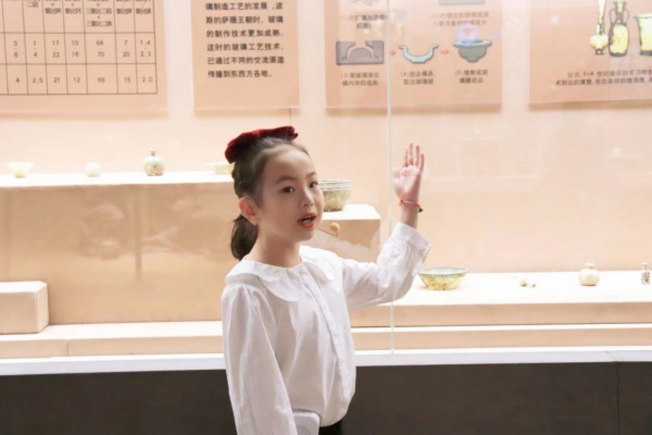 “尊敬的来宾您好,我是这次为您讲解的小导游王彩茵……”5月29日上午,王彩茵和其他21名儿童来到市玻璃博物馆,为前来参观的游客进行讲解服务。