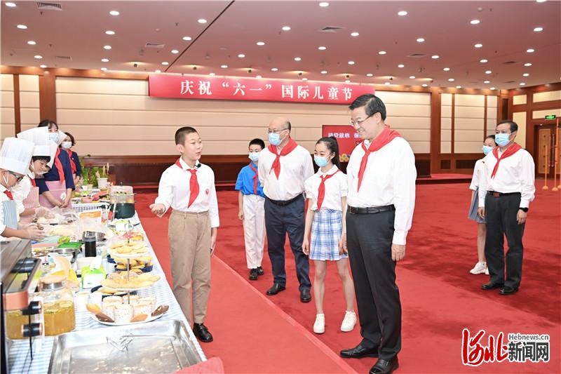 少年智则中国智,少年强则中国强。省会河北会堂内,一系列丰富多彩的活动,生动展现了当代少年儿童爱科技、爱创新、爱劳动的时代风貌。倪岳峰、王正谱来到小朋友中间,佩戴红领巾,与小朋友们共同参加庆祝“六一”国际儿童节主题活动。在“科技让城市更聪明”红领巾小社团展示区内,孩子们动手参与制作的口罩消毒机、智联药盒、智能机器人、巡航无人机等,创意新颖、设计精巧。倪岳峰、王正谱认真观看展示,勉励孩子们从小培养科学精神和创新意识,通过科技创新,让我们的国家更富强、生活更美好。在“劳动最光荣”红领巾小社团展示区内,孩子们种植的农作物、蔬菜,制作的冷菜拼盘和创意面点等,体现了新时代少年儿童勤于动手、热爱劳动的蓬勃朝气。倪岳峰强调,全省各类学校要认真落实“双减”工作要求,加强劳动教育,增强学生体魄,引导学生们在劳动实践中增长知识和才干。