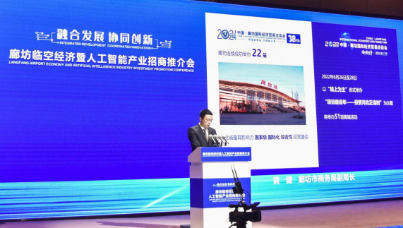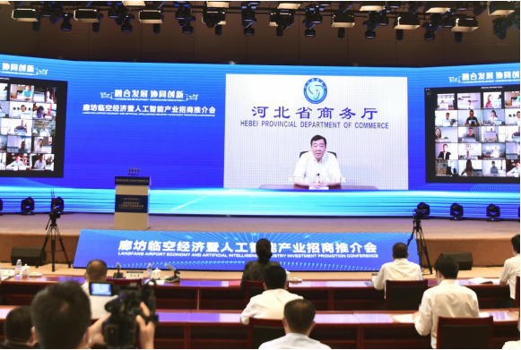 为全面贯彻落实省、市关于抓投资上项目促发展工作部署,6月8日,廊坊市举办临空经济暨人工智能产业招商推介会。该活动由廊坊市人民政府主办,河北省商务厅指导,廊坊市商务局、廊坊开发区管委会、临空经济区(廊坊)管委会、固安县人民政府共同承办,共邀请130多家中外企业“云”端对接洽谈,为推动廊坊数字经济加快发展续写新篇。