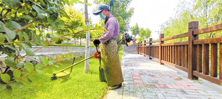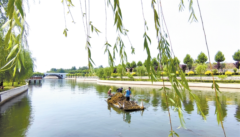 河道里有人专门打捞垃圾和水草。邸志永 摄