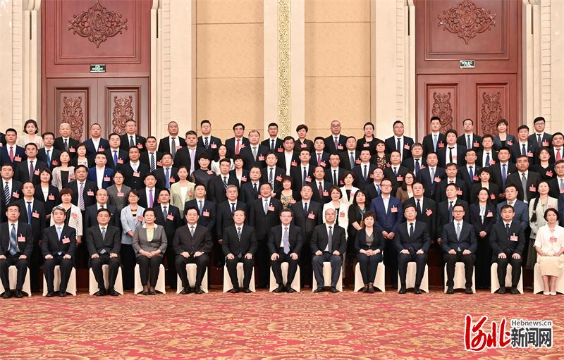 6月21日晚,省委书记倪岳峰在石家庄会见省工商联第十三次代表大会代表。这是活动前,倪岳峰、王正谱等省领导同与会代表合影留念。 河北日报记者赵海江摄