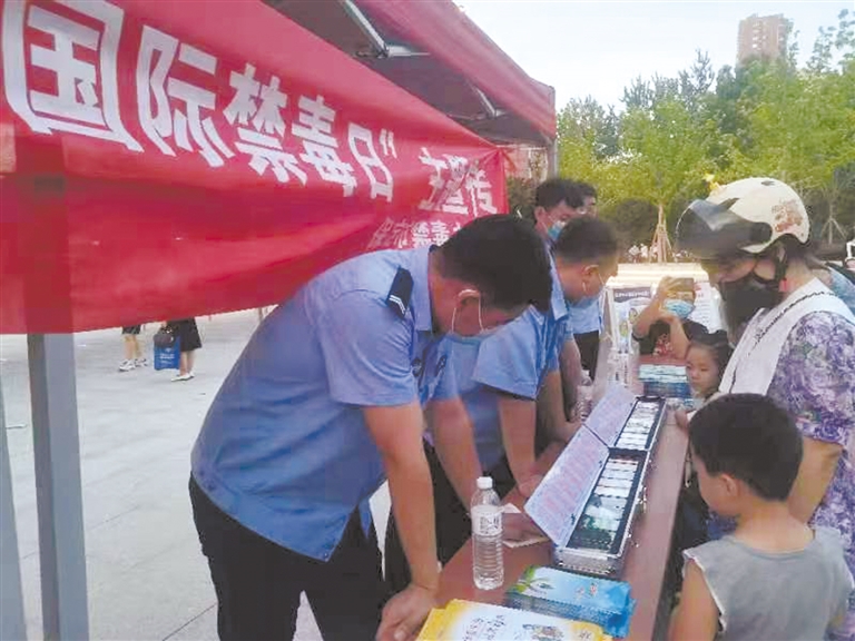 此外,保定市禁毒办、高新区分局禁毒大队的民警还在现场通过展板、发放宣传册、仿真毒品模型展示等形式,为过往市民进行了禁毒知识宣传讲解。保定市妇女联合会、共青团保定市委的工作人员也在现场作为志愿者,发放了宣传册2000份,通过此次活动进一步提升了市民拒毒、防毒意识,形成了浓厚的全民参与禁毒的社会氛围。