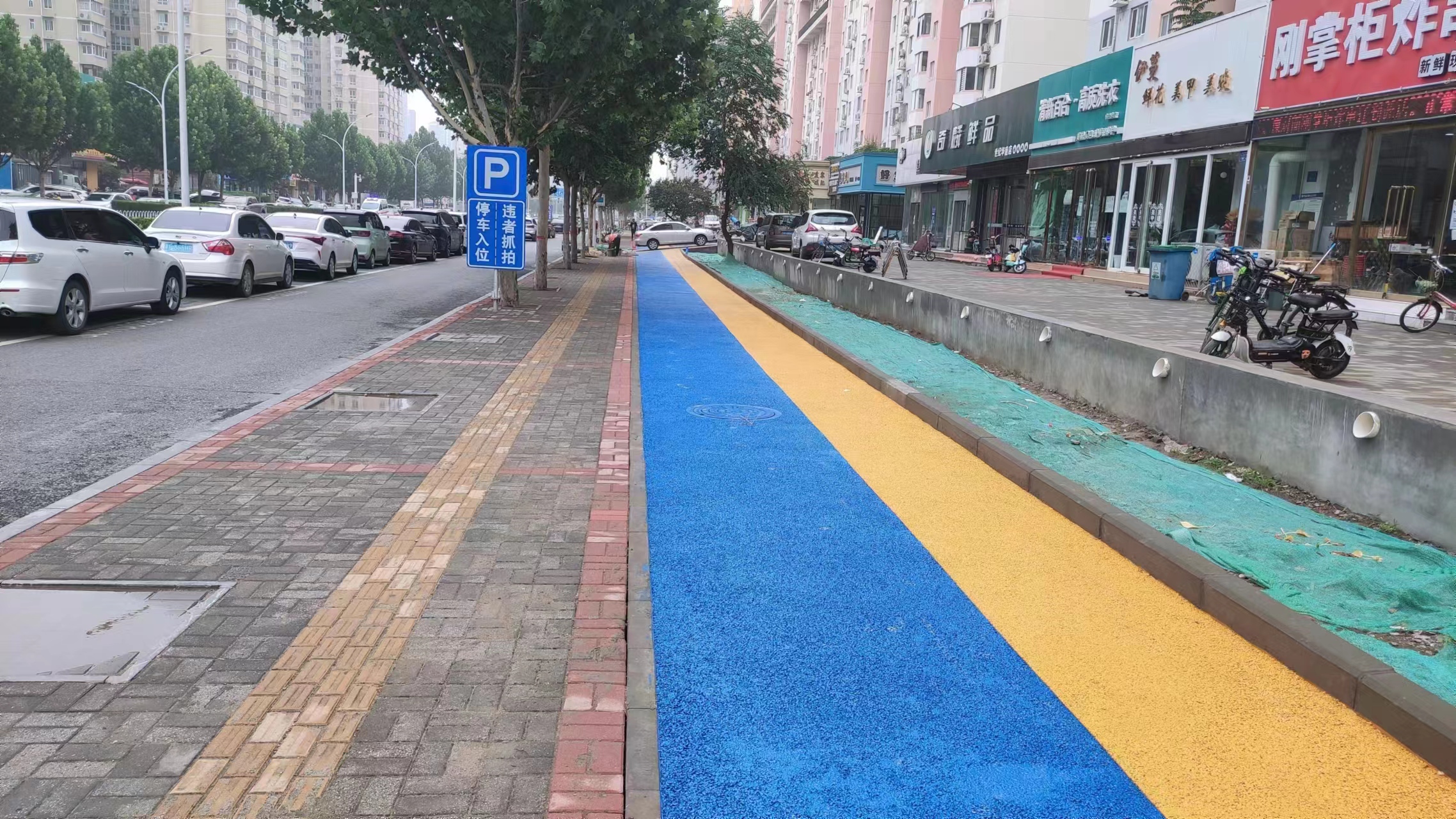 此次“畅通回家路”便道整治工程铺设的便道选材采用环保、无污染且有高透水性能的透水砖,能够进一步延长步道板使用寿命,并且施工后立即就能投入使用。同时为了真正实现优化街区人居环境,做到更协调、更便民、更美观,市政维护中心更换统一制式井盖762套,并针对盛兴路90余个破损树池进行了更换。在瑞兴路与李庄街交口路南的人行道部分采用了蓝黄彩色步道,此项施工比普通路面的工艺更为复杂,采用的是彩色透水混凝土,对于施工时的温度、湿度等条件要求较高,并且防滑透水也是一项重要指标。这抹“保定蓝”的黄蓝亮色步道与旁边的的绿植共同点亮街景,不仅改善了路面的观感效果,扮靓新颜值,还将成为周边市民休闲的好去处。