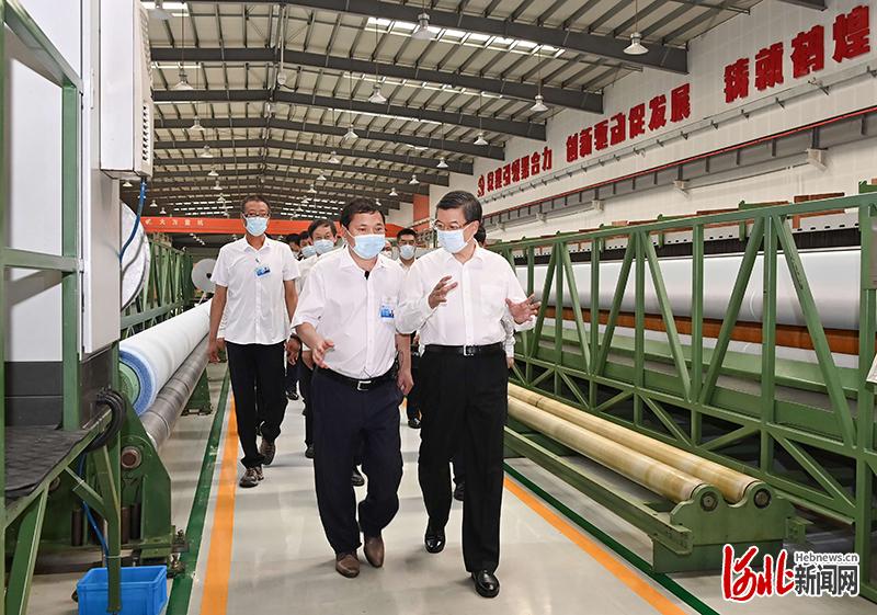 8月5日至6日,省委书记倪岳峰在衡水市调研。这是倪岳峰在安平县鹤煌网业股份有限公司,详细了解企业科技研发、生产运行、市场营销等情况。 河北日报记者赵海江摄