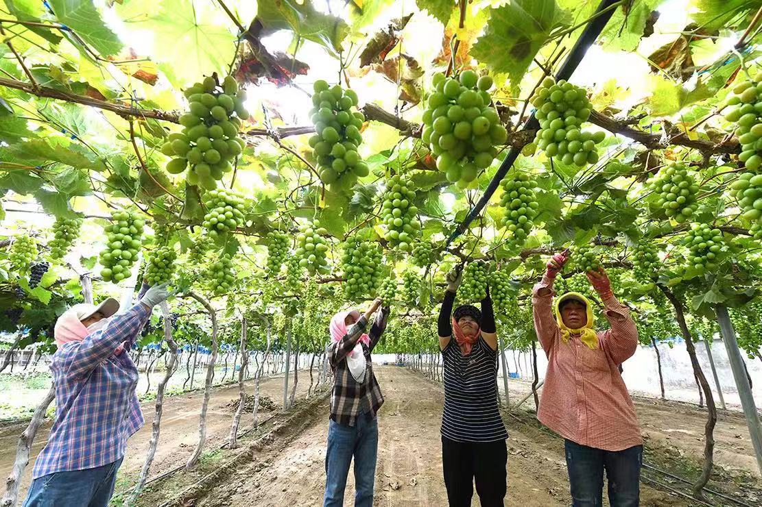 果农在葡萄大棚里忙采摘 孙慧军 摄影