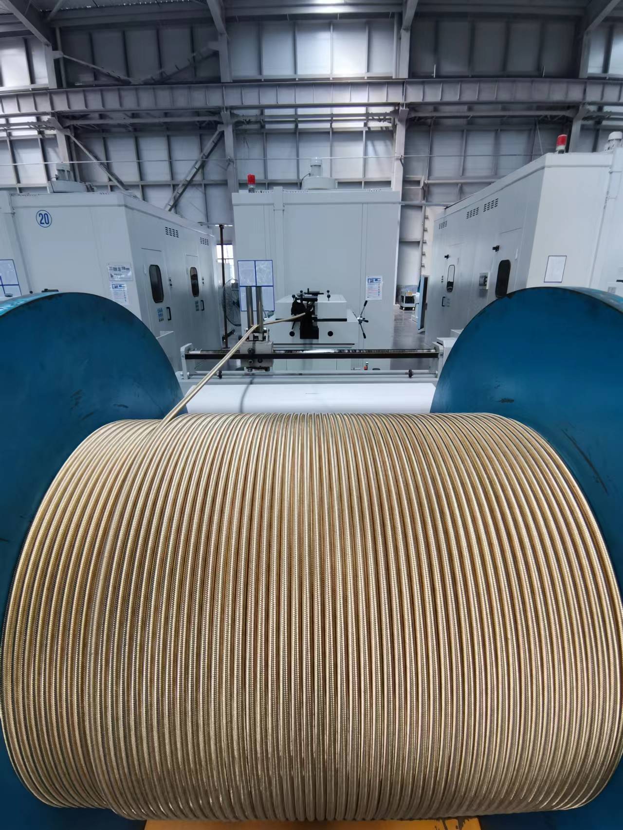 胶管缠绕机飞速旋转,一根黑色胶管从机器中穿过后便裹上了金属外衣……在衡水市景县卓凡液压科技有限公司生产车间内,全自动胶管缠绕机、编织机和合股机正全力运转。