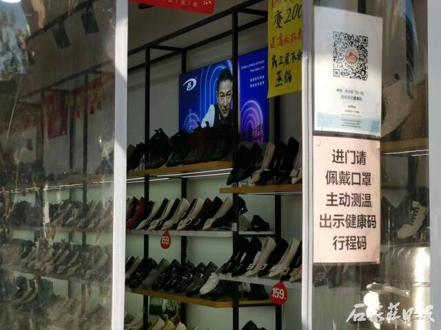 记者在上东城小区附近看到,沿街商铺在入口处的醒目位置都张贴了“出示健康码、佩戴口罩”等温馨提示,并在店铺内准备了免洗洗手液、消毒液、酒精湿巾等,供进店的顾客免费使用。据长安区商务局有关负责人介绍,该局加大对商超和商铺复业复市的帮扶力度,加大《新型冠状病毒肺炎防控方案(第九版)》有关防控措施的宣传和解读,通过网格化管理,指导市场主体严格实行防疫经理责任制,落实测温、扫“场所码”等措施,并按50%的接待量严格限流。