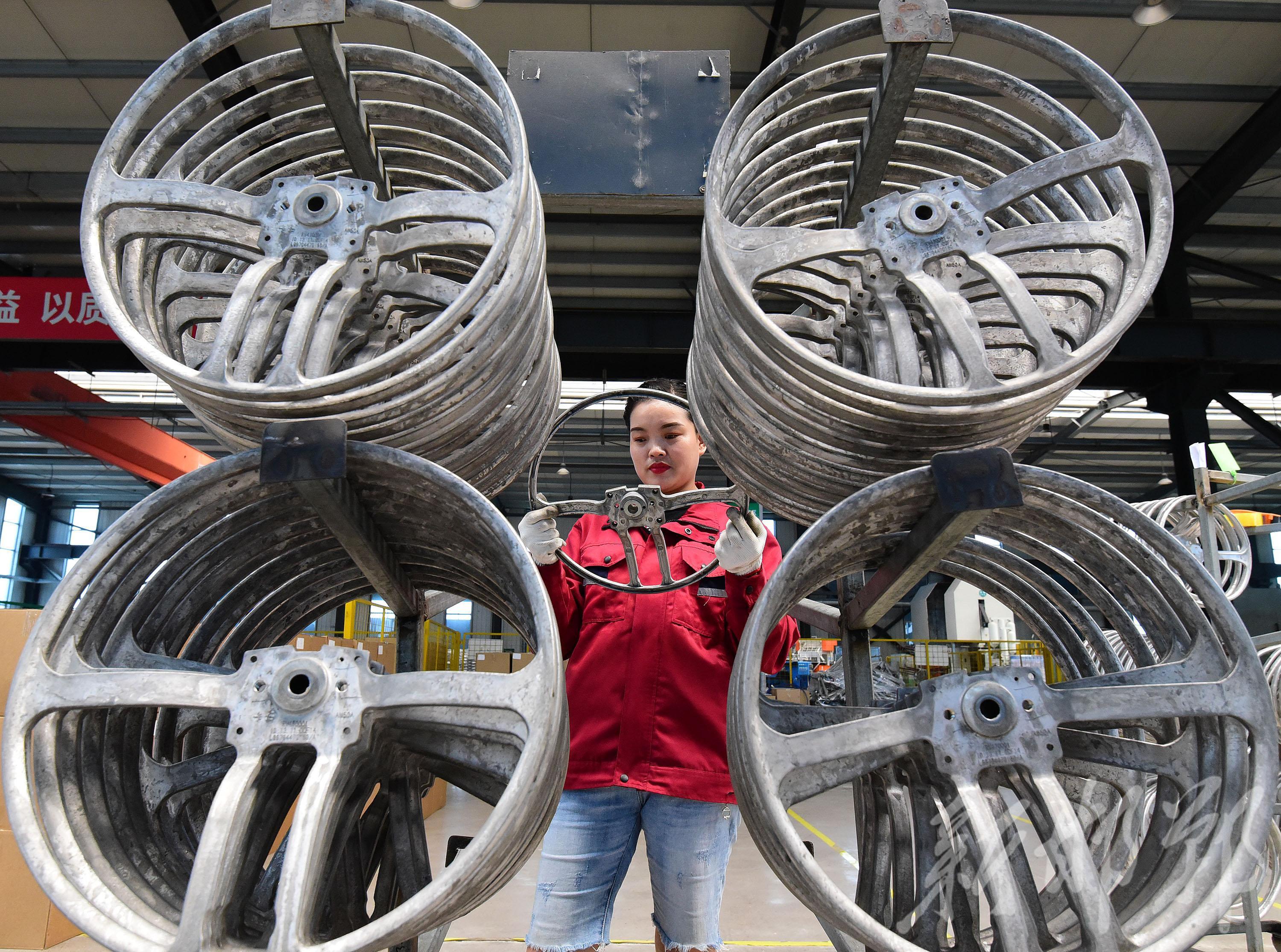 图为位于峰峰矿区的邯郸二宁禾科技股份有限公司内,工人在检查汽车方向盘骨架质量。 邯郸新闻传媒中心记者 郝群英 摄