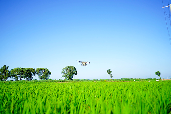 乐亭县马头营镇无人机正在作业。侯亚婷摄